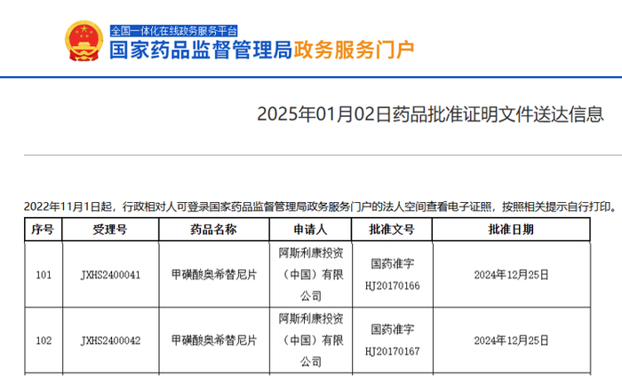 阿斯利康“奥希替尼”在中国获批新适应症