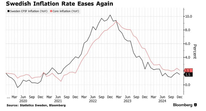 瑞典核心通胀超预期降温 瑞典央行1月降息概率大增