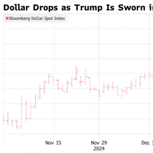智通财经获悉,在特朗普宣誓就任美国总统之际,此前媒体报道特朗普上任第一天不会征收新关税后,美元下跌,周一,彭博美元现货指数下跌1.1%,创14个月来最大跌幅,美国其他金融市场因假期休市。美元走软帮助提振了其他外币汇率,推动欧元兑美元汇率上涨1.6%,至1.0434。