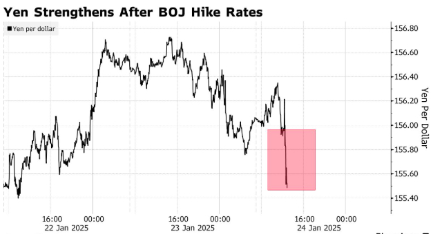 日本央行“鹰派”加息、上调通胀预测 日元应声拉升