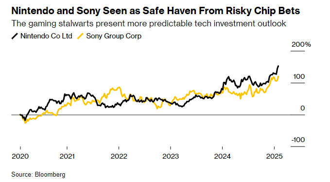 由于Switch 2游戏机即将发布,许多投资者淡然面对当前旧款Switch的销售淡季。此前,任天堂表示计划在今年晚些时候发布Switch 2游戏机,这推动其股价创下新高。该公司在1月透露了这款游戏机的消息,并计划在4月初全面公布其发布日期和价格。尽管任天堂的销售额大幅下滑,但市场对新一代主机将提振销售的预期,加之投资者将游戏行业公司视为日本动荡的芯片板块的避风港,支撑了该公司的股价。