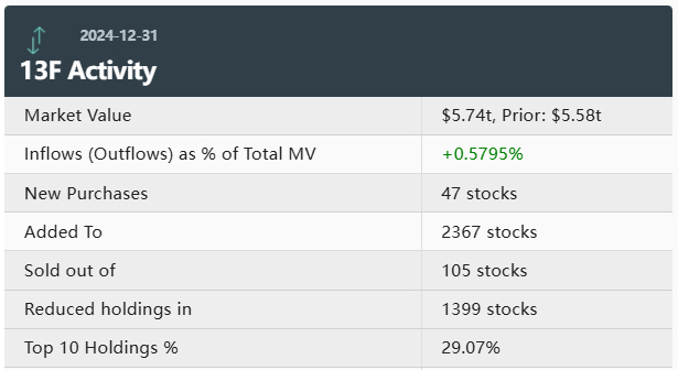 根据美国证券交易委员会(SEC)披露,美国先锋集团(Vanguard Group)递交了截至2024年12月31日的第四季度持仓报告(13F)。
