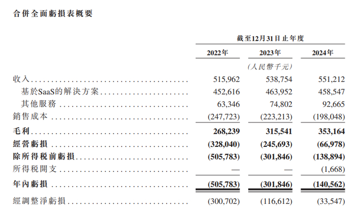 财务方面,于2022年、2023年以及2024年,慧算账实现收入分别约为5.16亿元、5.39亿元、5.51亿元人民币;年内亏损分别约为5.06亿元、3.02亿元、1.41亿元人民币。