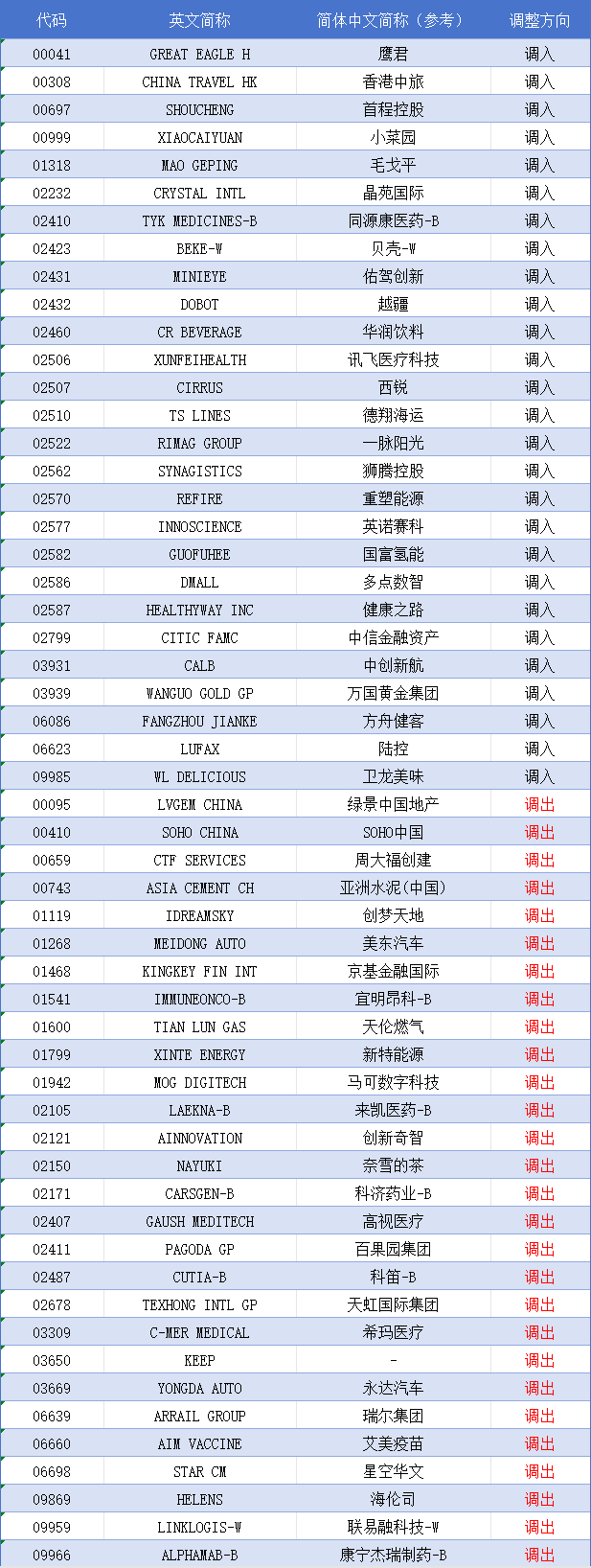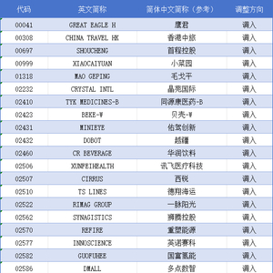港股通最新调整名单出炉:佑驾创新(02431)、毛戈平(01318)等27只获调入 绿景中国地产(00095)等被剔除