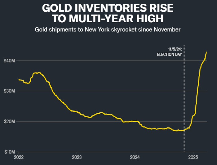 周四,纽约黄金触及今年的第17个纪录,在美国总统宣布对汽车征收关税引发对贸易战的进一步担忧后,现货黄金攀升至3060美元附近。美元指数的下跌也帮助推高了价格。而COMEX黄金6月合约周四盘中更是突破3100美元/盎司大关,刷新历史新高。随着黄金价格攀升至新高,华尔街继续上调目标价。