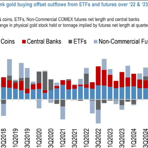 2025年料达900吨尽管已连续三年净购超千吨,摩根大通认为央行仍未完成“去美元化”配置。新兴市场央行(如中国、印度、沙特)尤其活跃,推动黄金在官方储备中占比提升至近20%。