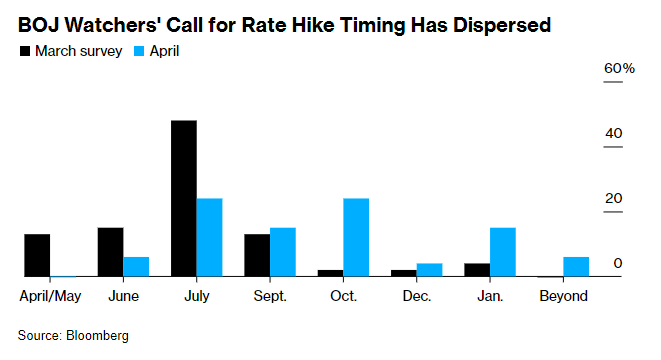 鉴于当前不确定性大幅增加,关注日本央行的各界人士对下次加息的预期也变得较为分散。近期的一项调查结果显示,预计在9月前加息的比例从上次调查的89%大幅下降至45%。