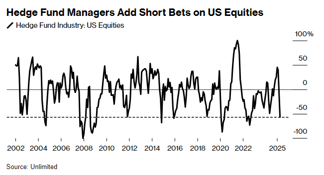 当关税政策引发市场剧烈震荡之际,多数对冲基金经理选择按兵不动,仍然不愿进行任何重大押注,唯有一个显著例外:他们正大举做空美国股票。