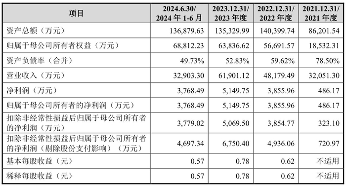 财务方面,于 2021年度、2022年度及 2023年度,公司实现营业收入分别约为3.21亿元、4.82亿元、6.19亿元。公司净利润分别约为486.17万元、3855.96万元、5149.75万元人民币。