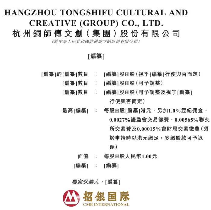 港交所5月9日披露,杭州师傅文创(集团)股份有限公司(下称:铜师傅)向港交所主板提交上市申请,招银国际为其独家保荐人。