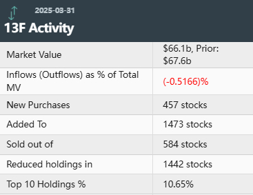 根据美国证券交易委员会(SEC)披露,文艺复兴科技公布了截至2025年3月31日第一季度(Q1)的持仓报告(13F)。