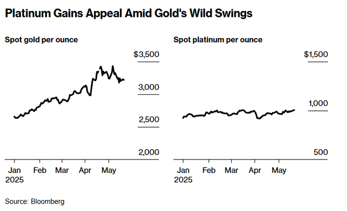 铂金在黄金大幅波动之际更具吸引力