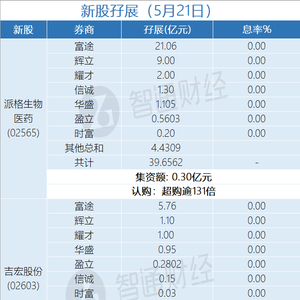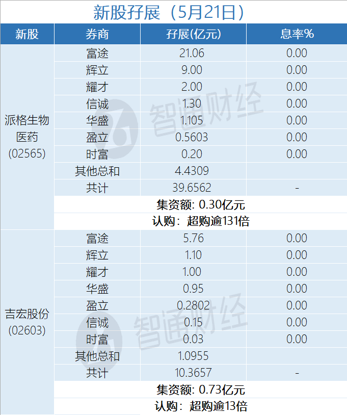 新股孖展统计 | 5月21日