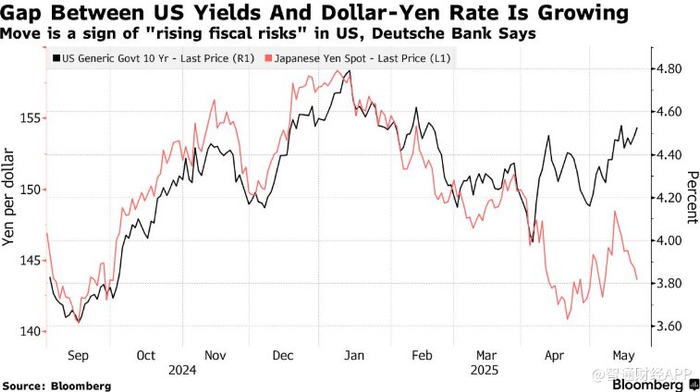 德意志银行表示,美国国债正面临来自日本债券日益激烈的竞争,因为日本债券收益率上升使其对当地买家更具吸引力。德意志银行外汇研究主管George Saravelos指出,近期美国收益率与日元汇率出现背离。这是“美国财政风险加速上升的最重要市场指标”,表明谨慎的外国买家正在从美国国债市场撤资。