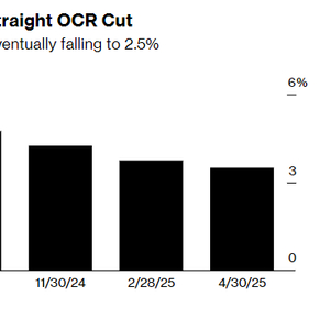 根据对23位经济学家的调查显示,22位预测新西兰央行将于周三(惠灵顿时间)将官方现金利率(OCR)下调25个基点至3.25%,仅1位预计降息50个基点。货币政策委员会很可能通过预测今年OCR将跌破3%来暗示至少还有一次降息。