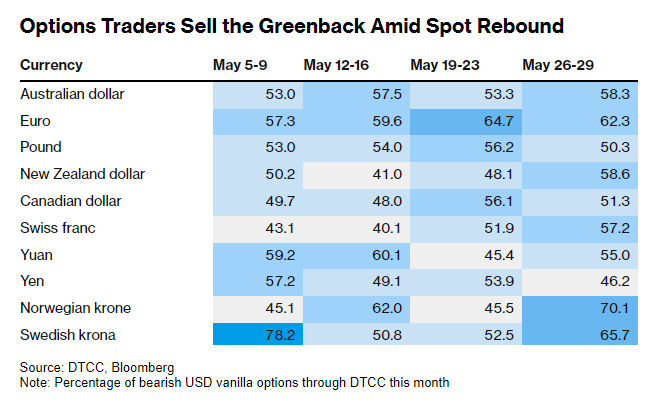 根据最新的资金流模式和仓位指标,期权交易员对欧元、瑞士法郎、挪威克朗和新西兰元兑美元的看涨情绪最为强烈。