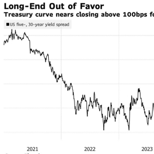 长期债券的疲软态势导致 20 年期美国国债收益率一度低于 30 年期的收益率,这一情况在近四年中最为严重。自大约五年前美国财政部重启 20 年期债券的发行以来,这一基准债券就一直不为投资者所青睐,并且其价格低于其面值,收益率高于 30 年期债券。