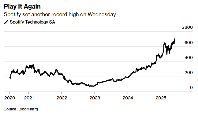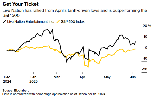 其中,Live Nation被Ian Moore列为“最佳选择”。数据显示,该股股价已自4月低点反弹,表现优于标普500指数。该股周三收涨2.6%。与此同时,Spotify股价周三收涨4.5%,创下历史新高。