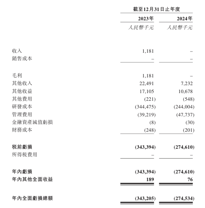 财务数据显示,于2023年、2024年,药捷安康收入分别约为118.1万元、0元人民币,相应期间年内亏损分别约为3.43亿元、2.75亿元人民币。
