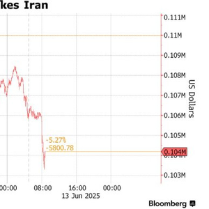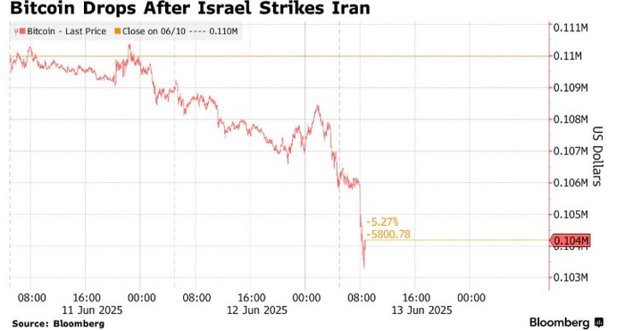 以色列空袭伊朗令风险资产集体受挫 比特币等加密货币暴跌