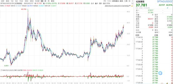 6月5日以来,白银强势突破,银价在小幅盘整后再创新高。7月14日,伦敦银现货一度站上39美元/盎司,创2011年9月以来近13年新高。