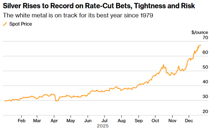 贵金属正迎来历史性的一年,黄金和白银均有望创下自 1979 年以来最大的年度涨幅。白银价格已翻了一番多,黄金价格也飙升了约三分之二,这主要得益于各大央行增加购买以及资金流入贵金属交易所交易基金。