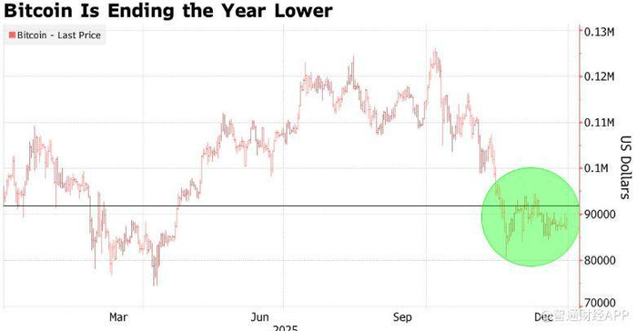 自10月经历一轮剧烈回调以来,比特币基本维持在约8.5万至9.5万美元的区间内震荡。该轮回调使比特币今年以来走势明显转弱,目前较去年12月下跌约5%,有望录得三年来首次年度下跌。值得注意的是,比特币曾在10月初一度上涨约30%,并刷新历史新高,但随后快速回吐涨幅。