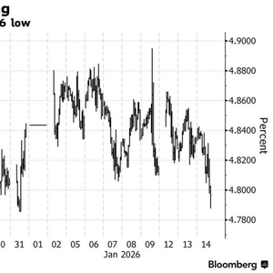 截至周三收盘,各期限美债收益率普遍下跌,跌幅在2至5个基点之间。30年期国债收益率今年首次跌破4.80%,并低于其200日均线水平——自去年12月初以来,该收益率尚未在收盘时低于此均线。