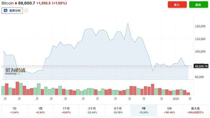 比特币以 10.9 亿美元的单周流出量居首,这是自 2025 年 11 月中旬以来的最大规模。截至发稿,比特币日内涨1.55%,报88600美元。