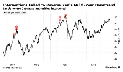 在美国财政部长贝森特对联合干预日元的可能性提出质疑后,交易员开始质疑日本若单独采取行动支撑日元,其干预举措的实际效果几何。