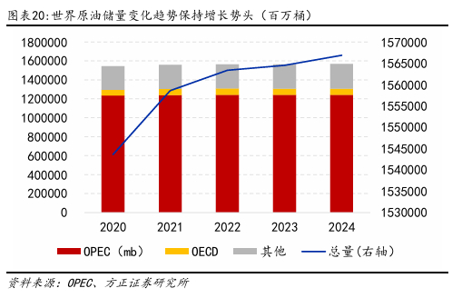 世界原油储量:影响长期石油供应世界石油储量是影响石油供应的长期因素之一。从资源禀赋理论来看,石油作为典型的不可再生资源,其理论储量会随着持续开采而逐步递减,这种自然衰减规律本应导致石油供应能力呈现长期下降趋势。但实际上,近几十年,石油储量持续保持增长势头,因为目前可能还有众多可能含油的地区未被勘探,以及勘探技术的不断提高会使原有油田储量不断上升。