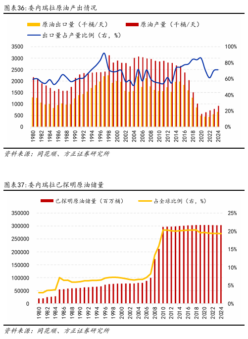 美委事件为石油美元“续命”。根据最新数据,2024年委内瑞拉原油日产量达92万桶,其中出口量占66万桶。虽然与疫情之前相比,委内瑞拉原油产量和出口量大幅下跌,但是近两年在缓慢恢复,并且原油出口量占产量比例也有所提高。更值得注意的是,2024年委内瑞拉已探明原油储量达303221百万桶,占全球已探明原油储量的19%。而特朗普政府已宣布允许美国能源企业全面参与该国石油基础设施重建,并称将以“非常有利可图的方式”长期“管理”委内瑞拉资源开发。这一立场本质上传递出关键信号:美国正推动全球储量最丰厚且尚未充分开发的石油资源重新融入美元结算框架,借此在沙特相关协议效力松动的背景下,为石油美元体系筑牢新的支撑锚点。