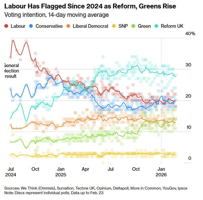 绿党赢得了曼彻斯特一席下议院特别选举,凸显出其对英国首相基尔·斯塔默所领导的执政工党在左翼侧翼所构成的威胁。这次特别选举失败对英国首相基尔·斯塔默领导的执政党工党来说是一个重大打击,该党此前曾在19个月前以绝大多数选票赢得了重要席位。这一结果也预示着英国执政党可能将在5月份的一轮地方选举中遭受重大损失,在那里它必须与包括绿党和奈杰尔·法拉奇领导的改革党在内的多个政党势力进行激烈斗争。随着斯塔默左翼票仓流失,英国政治版图碎片化加深、英国本土资产面临更高政治风险溢价。