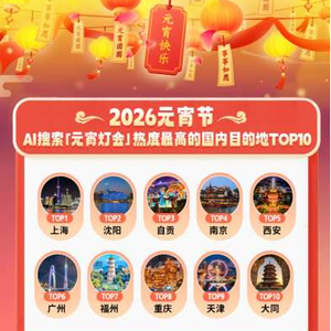 正月十五,各地丰富多彩的元宵灯会及猜灯谜活动,激发了节日出游热情。越来越多的消费者借助AI工具,获取定制化的元宵节出游方案。同程旅行数据显示,截至3月2日16点,使用同程旅行旗下旅行智能体DeepTrip搜索元宵节“灯会”的热度较上周同期增长超过40%。用户的AI搜索中,上海、沈阳、自贡、南京、西安、广州、福州、重庆、天津、大同等目的地的元宵灯会关注度最高。