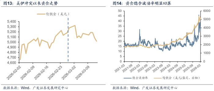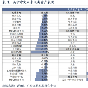 资产价格方面,两次冲突前期大类资产走势基本一致,呈现避险交易特征。但是俄乌冲突期间贵金属走势更为强势。短期来看,整体上,参考俄乌战争期间的资产走势,短期油价将继续维持高位高波动状态,且大类资产对油价和战争信息的敏感度仍较高。而从中期来看,随着战争烈度的下行,市场将逐渐对相关信息脱敏,各类资产将逐渐回归基本面定价。