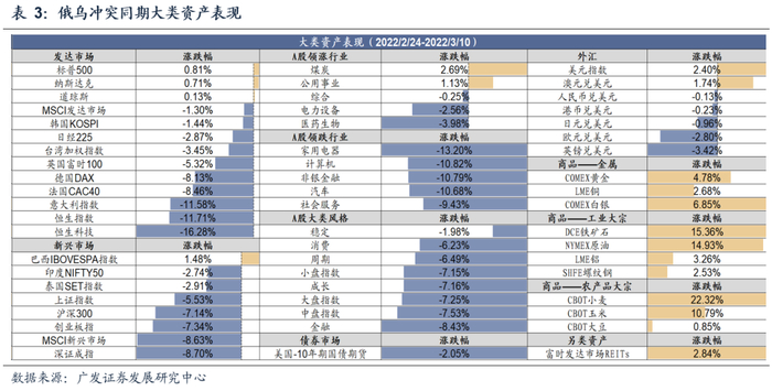3.资产价格方面,两次冲突前期大类资产走势基本一致,呈现避险交易特征。但是俄乌冲突期间贵金属走势更为强势。