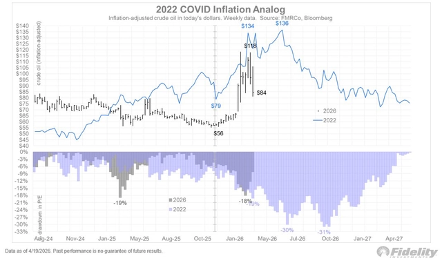 蒂默还将其与2022年疫情后通胀飙升时期进行对比,当时油价从79美元上涨至136美元(按今天的美元计价)。他表示:“那次油价冲击持续时间更长,因此股市调整时间也更长。”他补充称,当时还有更多因素在发挥作用,“包括美联储一次大规模加息周期,以及美国国债收益率出现代际级别的重定价”。