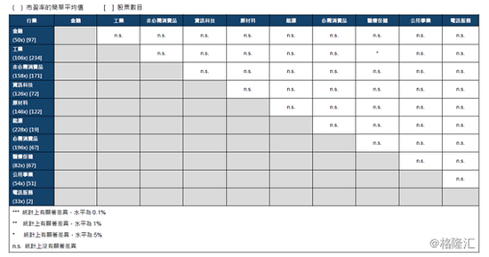在大部分行业中个别股票的市盈率在统计上均无显著差异,以下为部分例外情况(详情见附录
