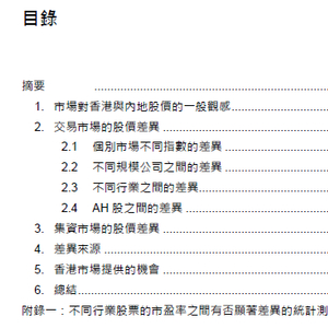 香港与内地市场的股价差异源自多个因素,当中包括市场特性、上市公司行业组成、投资者结构和投资者偏好等方面的差异。内地市场看来在宏观层面上股价比香港市场高,但香港市场在个别股票和行业的微观层面上股价亦有可能比内地市场高。