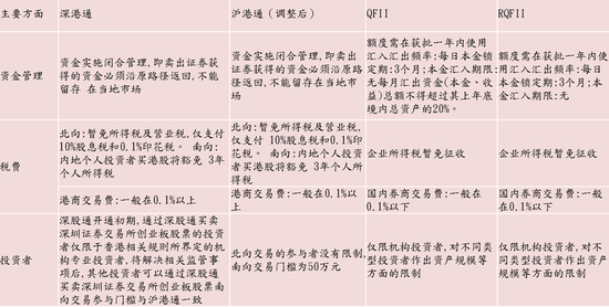 深港通、沪港通、QFII及RQFII制度对比: