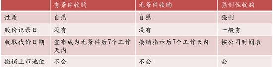 有条件/无条件/强制性收购的异同