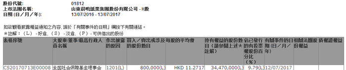 社保基金减持晨鸣纸业80万股 最新持股9.79%