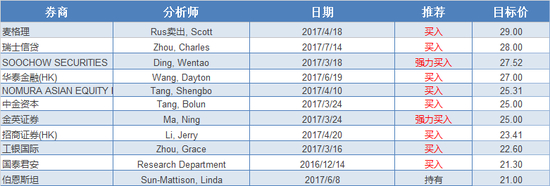 根据路透统计的分析师目标价数据,最高目标价为29港元,对应23.95港元报价有21.1%的涨幅。