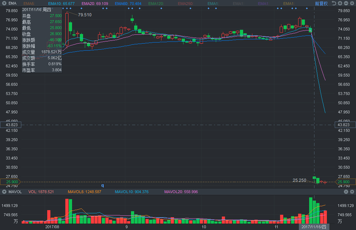 由于这一区别,分拆合并的两个时间节点对于股价的影响与股本增发恰恰相反,在公布日当天股价并不会有很大的波动,而到了生效日,股价则会出现动辄好几倍的变动(不复权),当然这并不会影响到股票本身的市值。