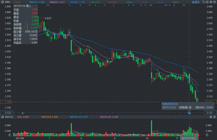 随后公司与11月9日宣布供股价为每股1.82港元,较当日收市价2.51港元折让27.5%,此时股价已无较大波动,尽管生效日当天该股股价同样出现下滑,但主要是由于其被调出MSCI中国指数,也与供股无太大关联。