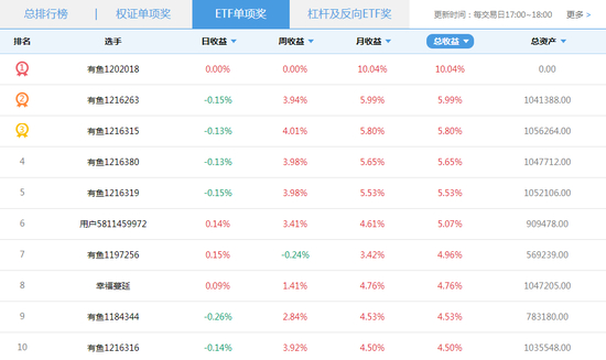 天天交易奖获奖名单top10