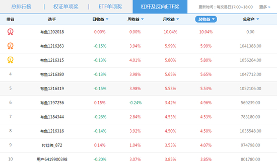 天天交易奖获奖名单top20