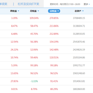 杠杆及反向ETF奖榜单: