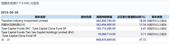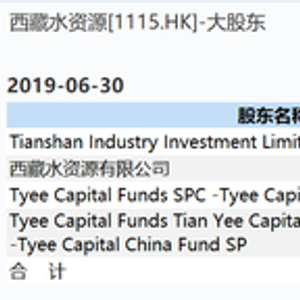 其中,公司大股东为天山工业,由中央汇金实际拥有权益;西藏水资源持股13.34%,由王坚实际拥有。