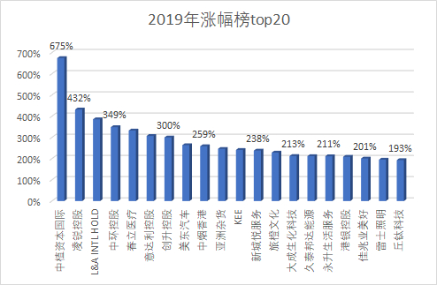 根据wind数据,港股2019年最大涨跌幅数据出炉,港股共计有82只翻倍股。其中,港股涨幅最大的中植资本国际,涨幅高达675%。中植资本国际是中植系港股上市平台,实控人为解直锟,传言中融信托拟借壳中植资本国际上市从而引发资本狂欢。